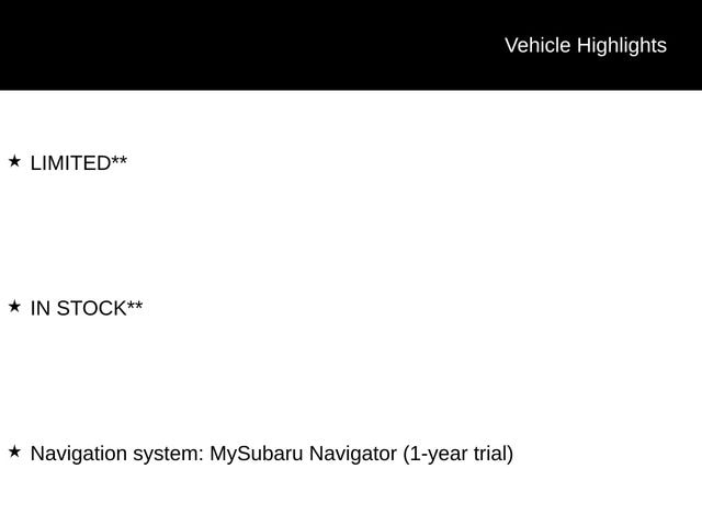 - Navigation system: MySubaru Navigator (1-year trial)