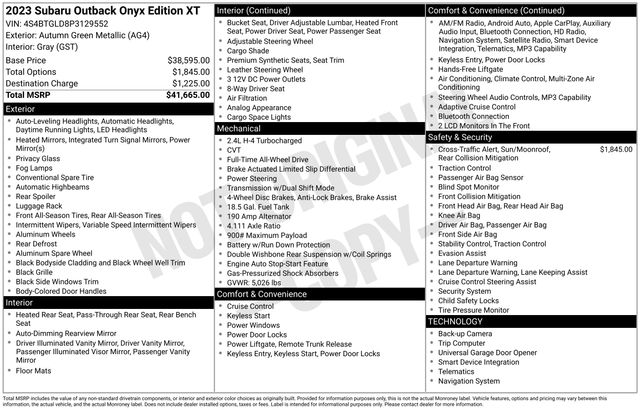 Certified. Green Metallic 2023 Subaru Outback Onyx Edition XT AWD 2.4L DOHC CVT Lineartronic